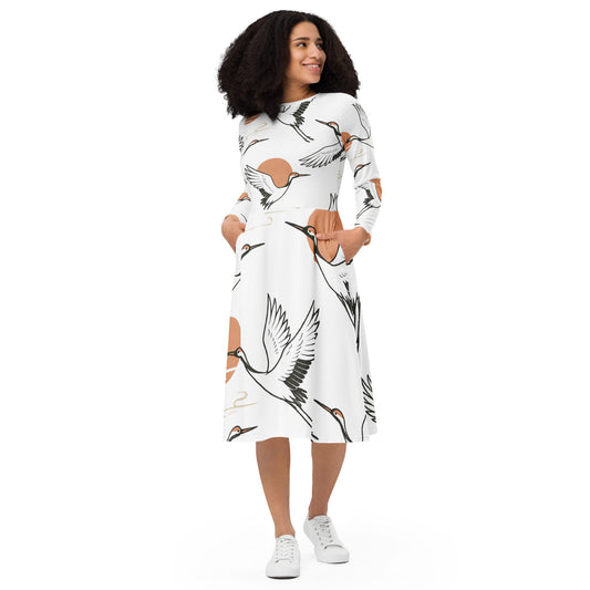 ZenRhyno-"Tranquil Rising" long sleeve midi dress