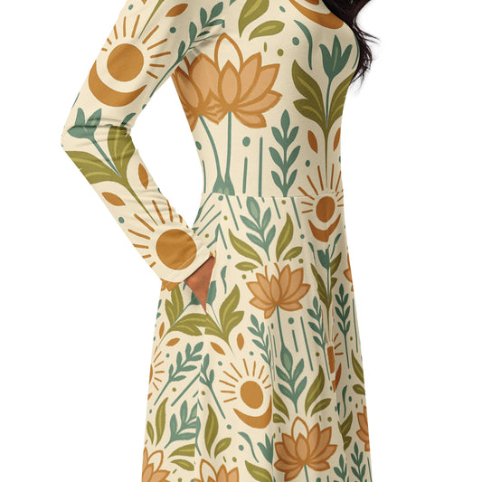 "ZenRhyno" All-over print long sleeve midi dress