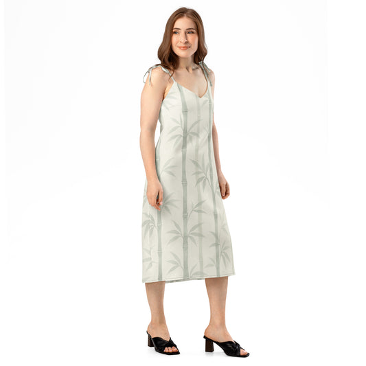 "ZenRhyno-Whispering Bamboo" Tie-strap midi dress