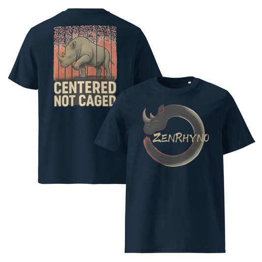 "ZenRhyno-Centered, Not Caged" Unisex organic cotton t-shirt